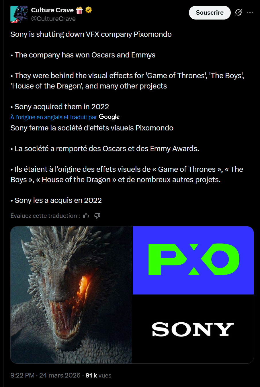 J espère que plus aucun studio ne se laissera racheter par sony c est signer son arrêt de mort. Le mecs font des records de chiffres d affaire et licencient à tour de bras