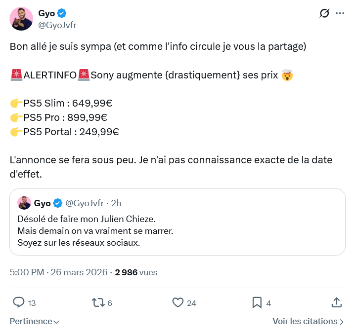 Et ce serait surtout la ps5 pro qui serait la principale fautive vu ses composants et donc sony est obligé d'aligner le reste.