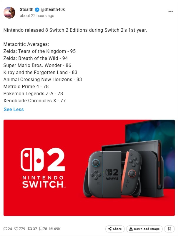 Nintendo a commercialisé 8 éditions Switch 2 au cours de la première année de sa commercialisation.