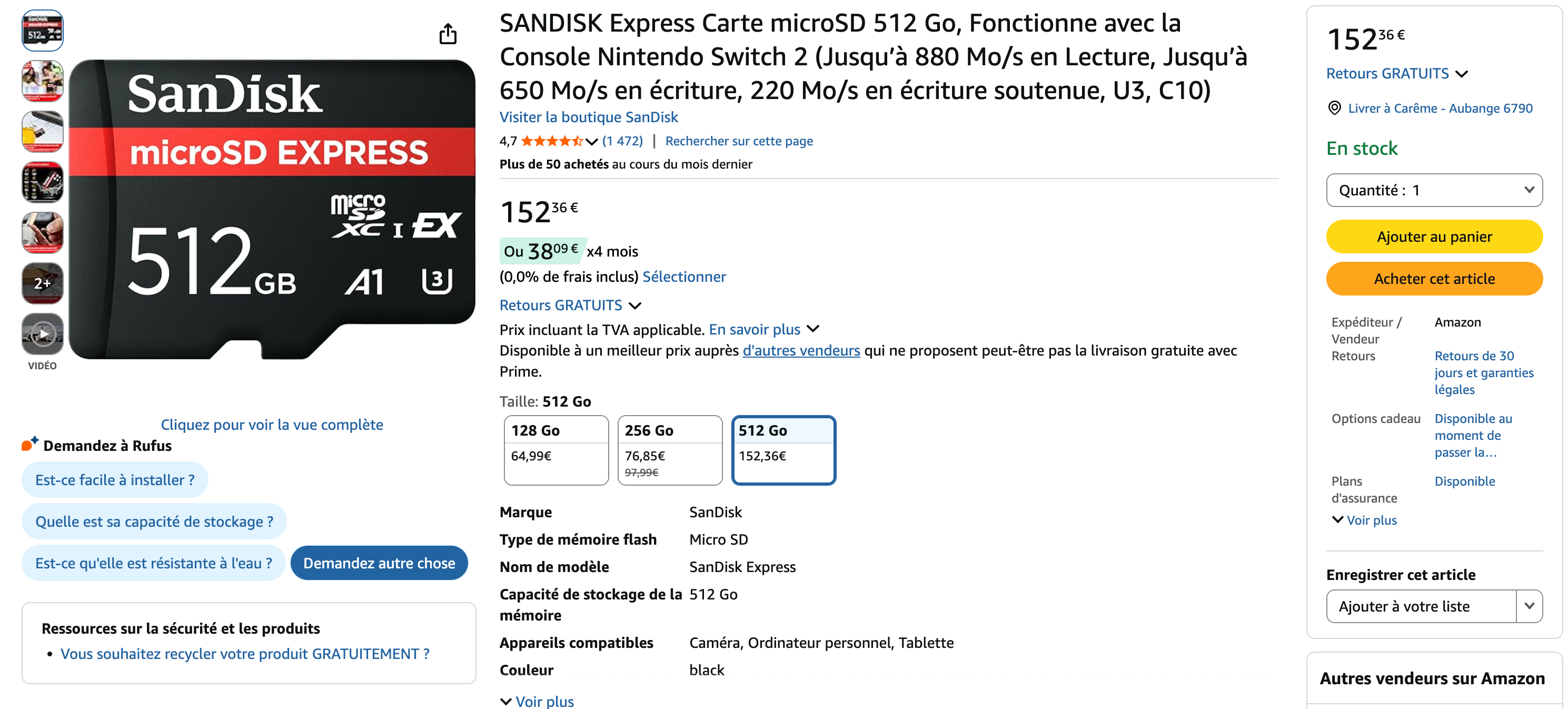 Ainsi la 512Go passe de 119,99(prix officiel) à 160-170 euros sur LDLC(ou un peu plus de 150 sur Amazon)