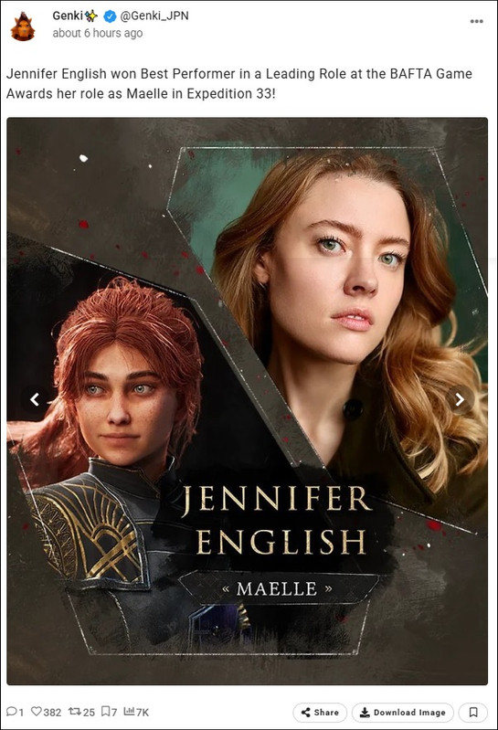 Interprète dans un rôle principal : Jennifer English (Maelle) dans Clair Obscur : Expedition 33