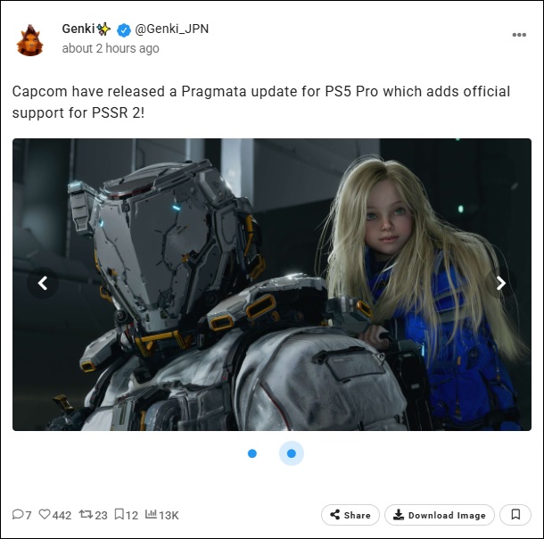 Enfin, Capcom a publié une mise à jour de Pragmata pour PS5 Pro qui ajoute la prise en charge officielle de PSSR 2 !