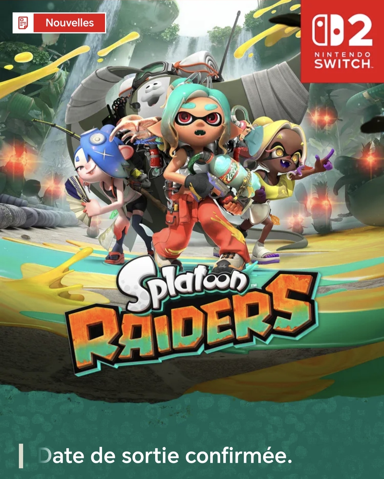 Je vais faire court avec la date de Splatoon Raiders qui sera un jeu complètement Solo et qui sera disponible le 23 juillet 2026
