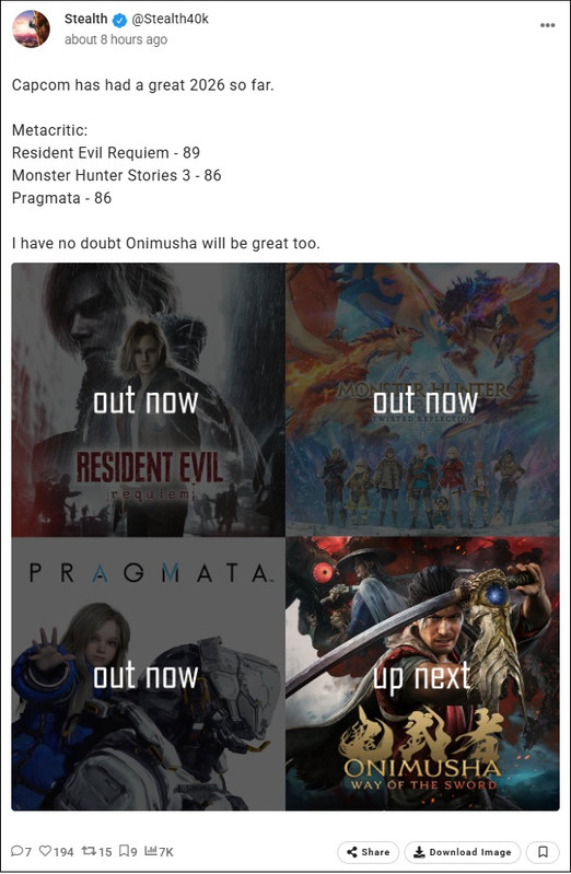 Capcom a connu une excellente année 2026 jusqu'à présent. Metacritic :