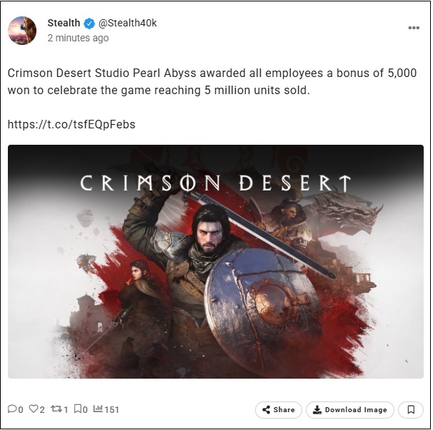 https://www.resetera.com/threads/mtn-pearl-abyss-gives-all-employees-a-special-bonus-of-5-000-usd-each%E2%80%A6-to-celebrate-5-million-copies-sold-of-crimson-desert.1502875/