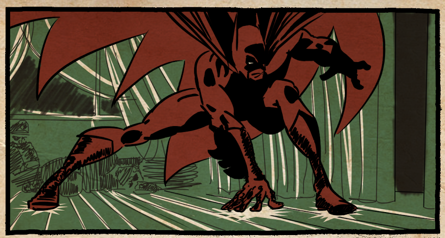 Le Batman n'est pas fait par mes soins (je ne me suis seulement occupé du coloriage) mais par un ami dessinateur qui commence sa carrière (sa première BD du nom de "Clockwerx" est sortie y'a un bout de temps, le tome 2 devrait bientôt paraitre).