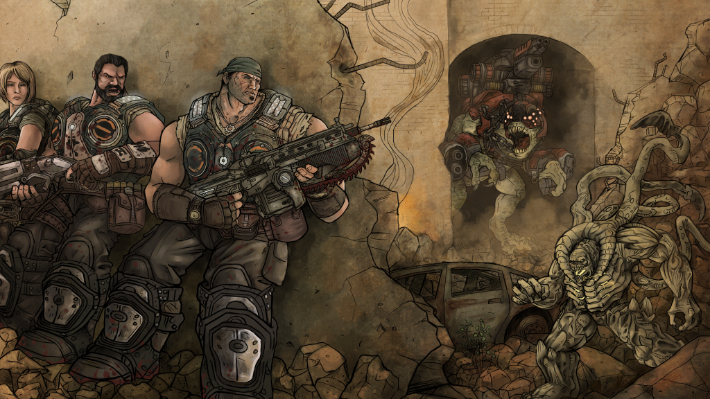 Gears of War raconte l’histoire de Marcus Fenix, simple soldat dans une guerre entre Humains et Locustes.