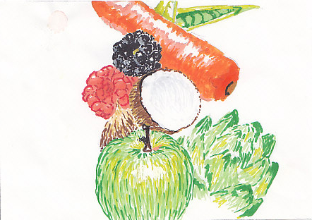 Pour commencer, j'vous présente un projet qui etait de réaliser une carte postale sur le theme de la faim. Le recto représente l'abondance, et le verso la "famine". Malheureusement, je ne pourrai pas vous faire voir le verso puisqu'il est toujours en travaux :s