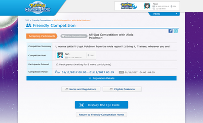 Avec la sortie prochaine de Pokémon Soleil et Pokémon Lune, le Pokémon Global Link (le site web qui connecte les joueurs Pokémon du monde entier) va mettre fin à son service sur Pokémon Rubis Oméga, Pokémon Saphir Alpha, Pokémon X et Pokémon Y et sera mis à jour pour être compatible avec Pokémon Soleil et Pokémon Lune. À cette occasion, de nouvelles fonctionnalités seront ajoutées au PGL pour permettre aux joueurs de profiter encore plus des combats en ligne ! Pour plus d’informations sur la mise à jour du PGL et ses nouvelles fonctionnalités, rendez-vous sur le site du Pokémon Global Link (www.pokemon-gl.com).