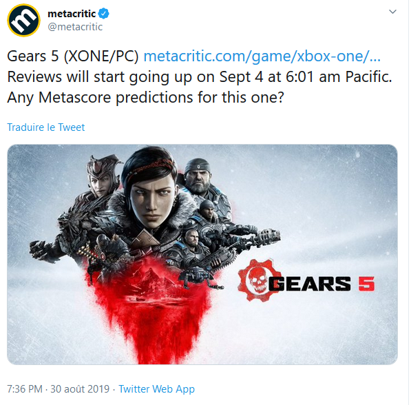 "Gears 4 a été notre première véritable entrée dans la saga Gears et une énorme expérience d'apprentissage pour nous tous. Nous sommes extrêmement fiers de ce que Gears 4 a accompli et de la façon dont notre collaboration avec la communauté au cours des trois dernières années a façonné ce que Gears 5 est devenu. Je vous remercie sincèrement, profondément, pour tout votre soutien depuis octobre 2016. "