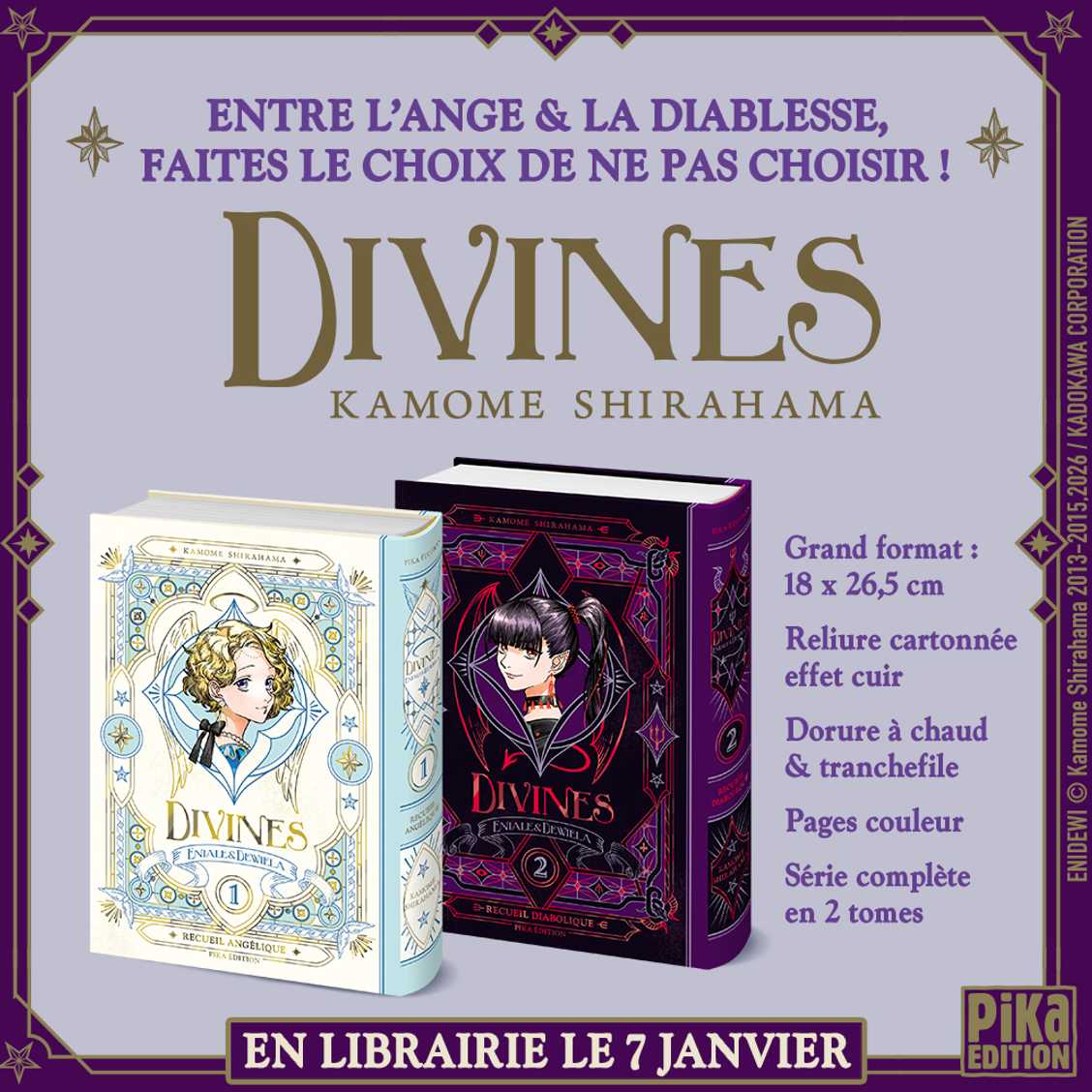 Une édition deluxe en deux volumes pour le manga Divines de Kamome Shirahama (L’Atelier des Sorciers) qui sortiront en même temps le 7 janvier au prix de 15€ chacun.