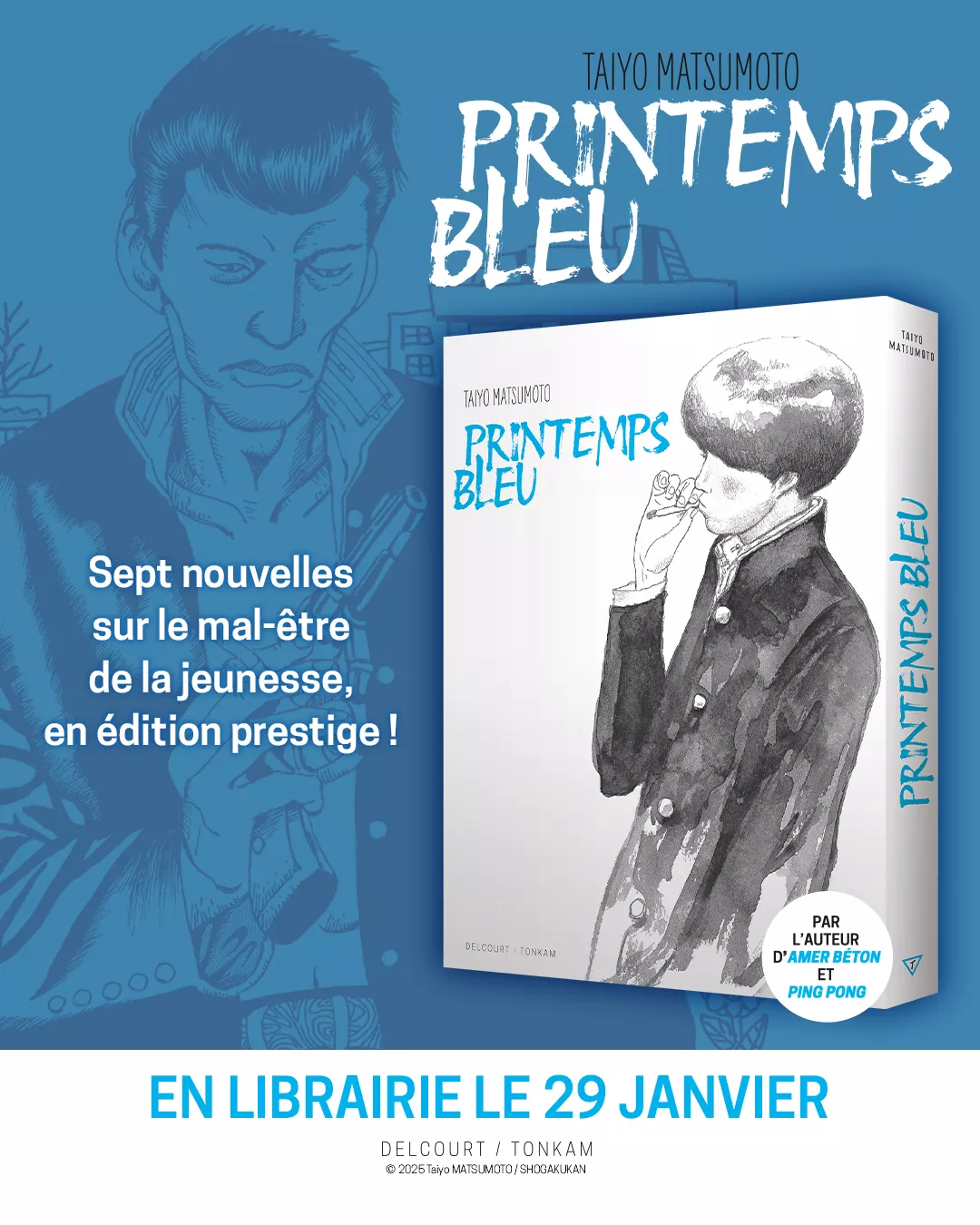L'édition prestige grand format du manga Printemps Bleu de Taiyou Matsumoto sortira le 29 janvier au prix de 19,99€.